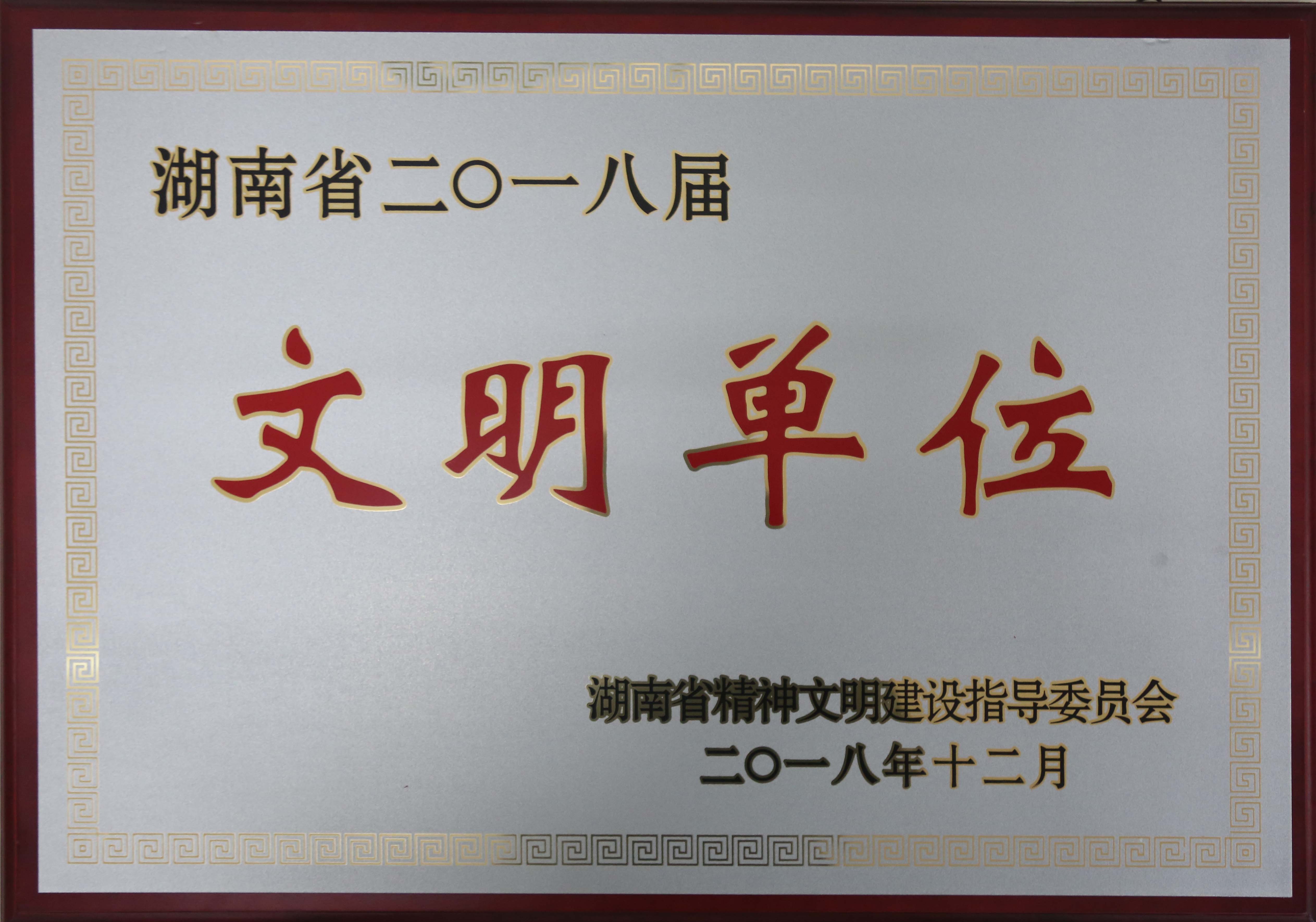 • 2018年12月被湖南省精神文明建設(shè)指導(dǎo)委員會評為“湖南省二〇一八屆文明單位”